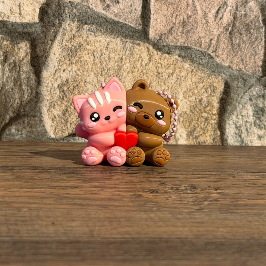 Als Schlüsselanhänger begleiten sie zwei Menschen durch den Alltag, als Dekofigur erinnern sie daran, dass Nähe nicht laut sein muss. Die Figuren sind immer im Pärchen erhältlich, die Motive können frei gewählt werden – so individuell wie die Verbindung, die sie symbolisieren.